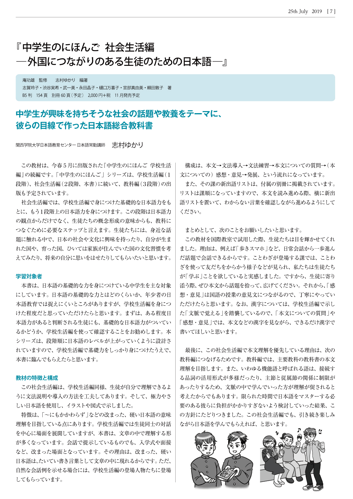 『中学生のにほんご社会生活編 ―外国につながりのある生徒のための日本語―』